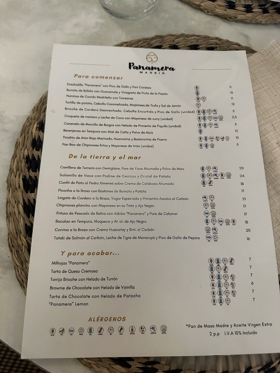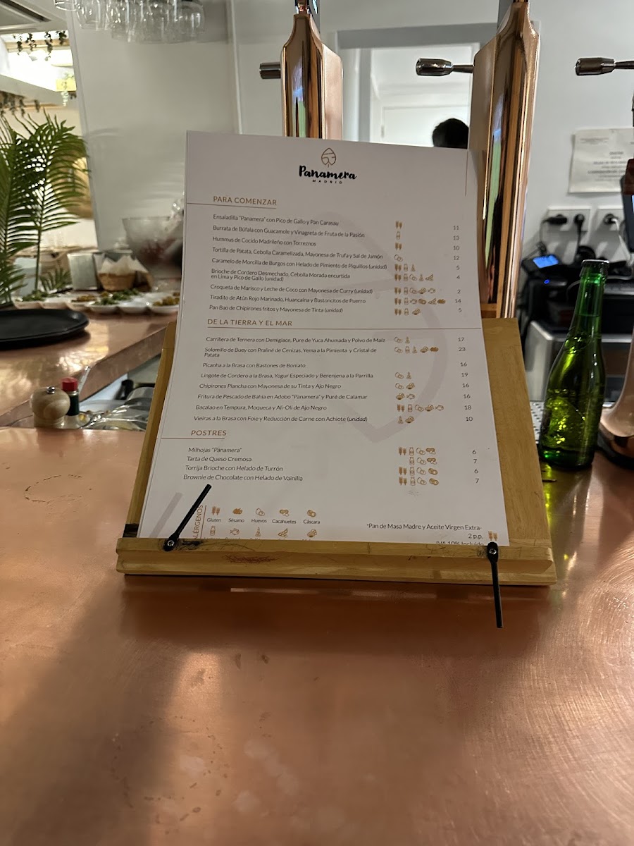 Panamera Madrid Menu